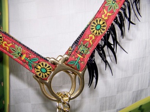 This is a beautiful Persian inspired traditional and authentic halter set. Featuring shark tooth fringe and a lovely tassel with concho, it is an international favorite.